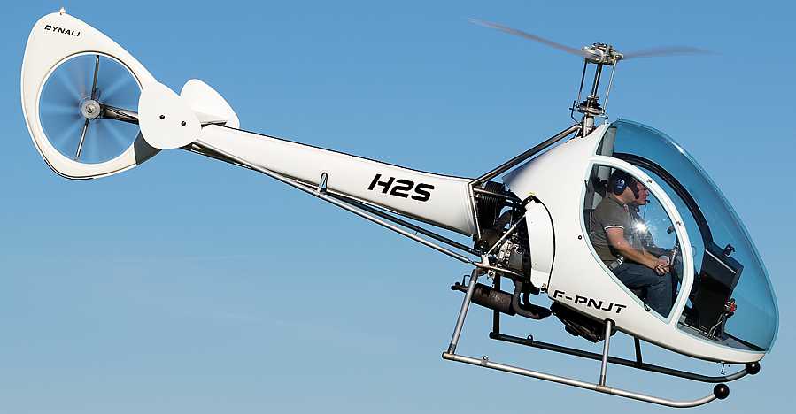 The H2 features a single main engine, a side-by-side two-seat enclosed cockpit with a windshield, and skid-type landing gear. The fuselage is constructed from a combination of aluminium tubing and welded stainless steel, covered by a polycarbonate fairing. The tail rotor is an enclosed Fenestron type with eight blades.